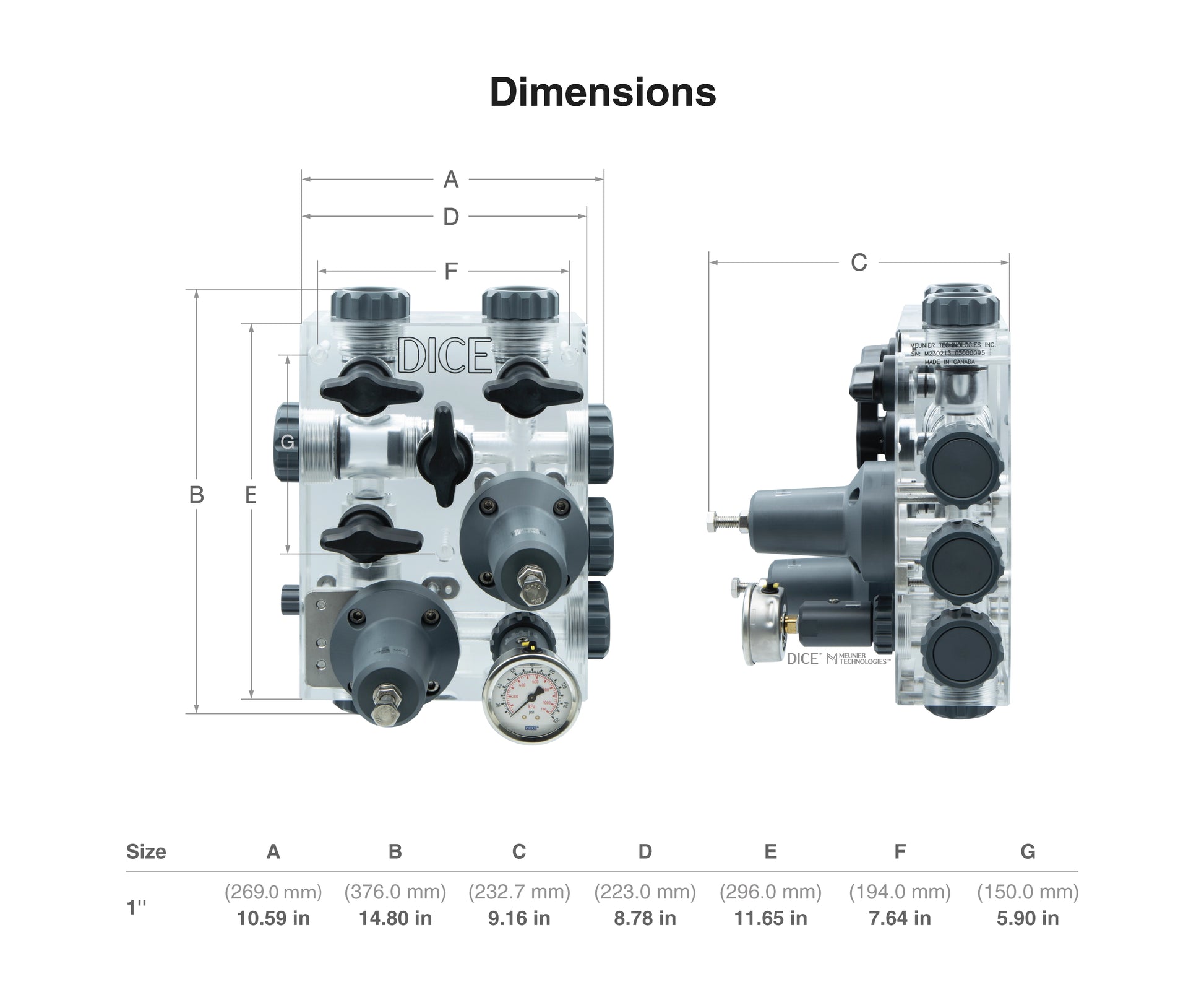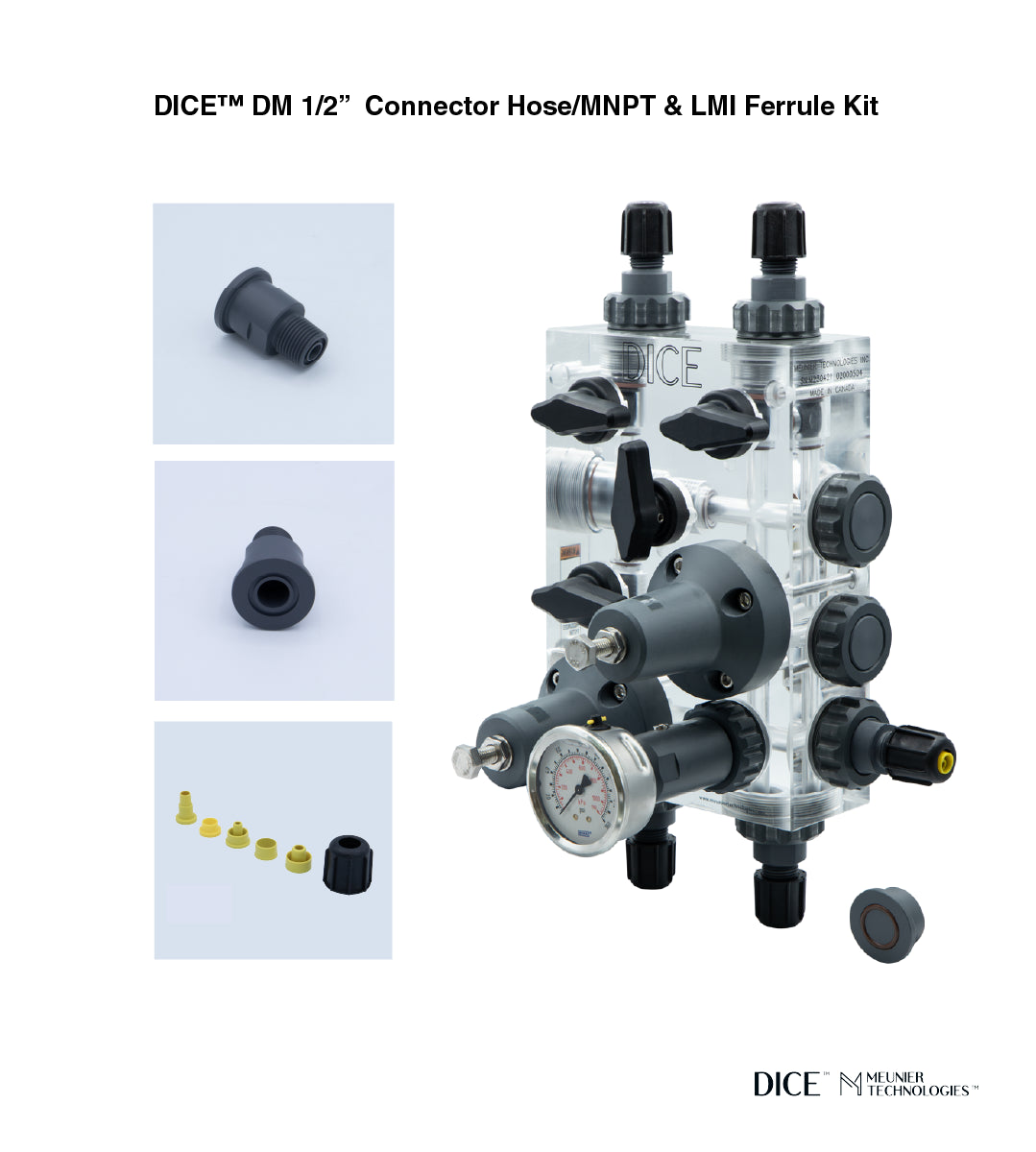 SKU:DIM21-MVII-1111144Z4-OEC | DICE DM 1/2" 150 PSI Acrylic (PMMA) PVC Viton/FKM 5x 1/2" NPT male, 3x cap, 1x isolator & pressure, 1 extra cap
